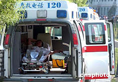 六月九日,十輛急救車在北京大安山煤礦出事礦井附近待命,已等候一天一夜的醫(yī)務(wù)人員在車上小憩。六月六日,位于北京郊區(qū)的大安山煤礦發(fā)生坍塌事故,十名礦工被困井下。原先估計(jì)九日上午即可打通營救巷道,找到被困礦工,但井下地質(zhì)狀況十分復(fù)雜,截至九日下午六時(shí),巷道尚未打通,估計(jì)還有三米的距離。中新社記者:張煒