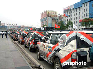 中國(guó)禁毒志愿者汽車萬(wàn)里行車隊(duì),六月十六日抵達(dá)湖北省宣傳禁毒。作者:艾啟平