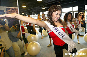 六月十九日,按照二零零四年國(guó)際旅游小姐冠軍總決賽的日程安排,來(lái)自五十多個(gè)國(guó)家和地區(qū)的參賽佳麗在杭州參加健身鍛煉。中新社記者:盛佳鵬