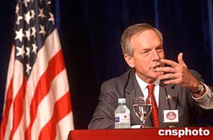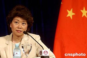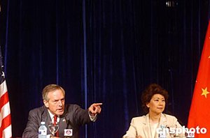 六月二十四日,美國商務(wù)部長埃文斯和勞工部長趙小蘭在北京舉行聯(lián)合記者會,就中美貿(mào)易等有關(guān)問題答記者問。中新社記者:武仲林