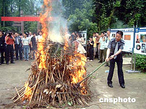 中新網(wǎng)6月26日電 今天是國際禁毒日,聯(lián)合國毒品監(jiān)督機(jī)構(gòu)去年3月公布的一份年度報(bào)告指出,目前全球經(jīng)常性和偶爾性的毒品使用者已達(dá)兩億之多;其中1.63億人吸食大麻,3400萬人食用安非它明,1400萬人食用可卡因,1500萬人服用鴉片制劑,800萬人食用搖頭丸。全球毒品每年銷售總額8000億至1萬億美元,占全球貿(mào)易總額的10%,這一數(shù)字高于石油和天然氣工業(yè)的收入,與全球軍火貿(mào)易額相差無幾。