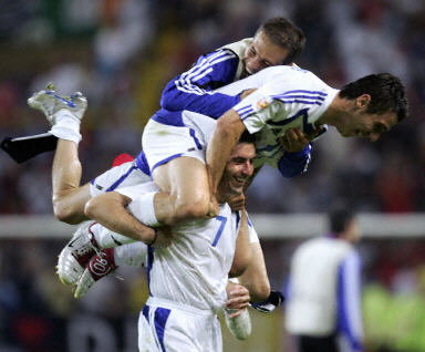 希臘隊(duì)則創(chuàng)造了首次進(jìn)軍國(guó)際大賽四強(qiáng)的最好成績(jī),成為本屆比賽最大的“黑馬”。他們先后擊敗葡萄牙、法國(guó),戰(zhàn)平西班牙,闖入四強(qiáng)讓人心服口服。在半決賽中,他們將對(duì)陣捷克隊(duì)和丹麥隊(duì)比賽的勝者。