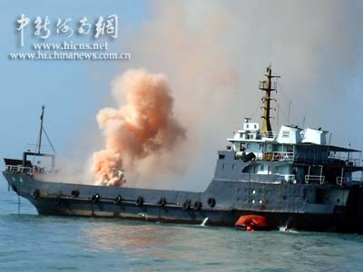 上午九點正,搜救演習指揮船粵海鐵上空升起三顆耀眼的信號彈,預先放置在南海指定海域“海難遇險船”“南海號”甲板上冒出紅色和白色兩種煙霧,駐守在南海附近的中國搜救隊伍得到求救信號:“海難”發(fā)生了。