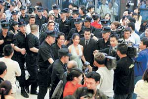 在新聞發(fā)布會結(jié)束后,尊龍、李玟、夏雨等主創(chuàng)與特地趕來助陣的華納藝人汪峰、老狼等還參加了走紅地毯儀式,由于活動安排在了戶外,也使得現(xiàn)場一片混亂。由于紅地毯很窄,所有的攝影記者都圍在了兩邊。當(dāng)最后尊龍、李玟等人攜伴走來時,記者們根本不顧任何阻擋一擁而上,圍觀的群眾也為看到兩位國際巨星,沖出了現(xiàn)場維持秩序的工作人員的阻擋,使得現(xiàn)場秩序大亂,而尊龍與李玟只得在眾多保鏢的圍攏下艱難地前進。當(dāng)所有的明星在走完紅地毯后,現(xiàn)場一片狼藉,所有的花籃都散落在地上,有的小花盆還被人踩碎了,更有圍觀的群眾拿走掉落的鮮花。