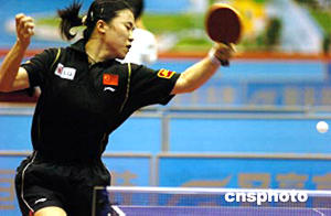 中國乒乓球隊(duì)七月二日在廣東湛江舉行熱身賽,這也是中國乒乓球隊(duì)在出征雅典奧運(yùn)會(huì)前最后一次公開熱身。圖為為王楠在熱身賽中四比三險(xiǎn)勝小將丁穎。作者:柯小軍