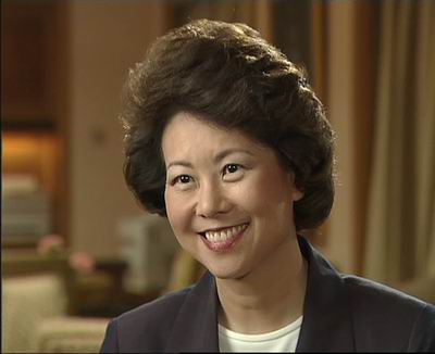 趙小蘭:你知道,在美國并不是許多亞裔都能有機(jī)會步入政界,我們長大以后,父母們都希望我們能在工程科學(xué)領(lǐng)域發(fā)展,因為這些領(lǐng)域向我們提供了很大的發(fā)展空間,在這些領(lǐng)域里語言并不是很大的障礙,所以這些是亞裔美國人經(jīng)常涉足的領(lǐng)域。隨著我在美國主流社會里的逐漸打磨,我很幸運(yùn)有一對開通的父母,他們鼓勵我做任何我想做的嘗試,他們也是非常堅定的人,他們鼓勵我去探索世界,開拓視野,從而真正找到世界的真相,所以在我還是紐約一家知名銀行里的一個年輕職員的時候,我對美國聯(lián)邦政府就非常好奇,因為并不是很多亞裔美國人都有機(jī)會在聯(lián)邦政府里工作,我看到了白宮實習(xí)生計劃后,感到這是加入聯(lián)邦政府的一個契機(jī)。(記者:這對您是一個轉(zhuǎn)折點(diǎn),是嗎?),那段經(jīng)歷非常有意思,它向我提供了一個與內(nèi)閣成員和其他政府高級官員共事的機(jī)會,我在白宮的政策發(fā)展部門工作,在里根總統(tǒng)的內(nèi)閣里充當(dāng)一名職位很低的職員,這讓我初步體驗到這個世界有多大,體驗到我從沒見過的政府有多大,它每天都在向我打開一扇新的大門,我每天也都在學(xué)習(xí)新的東西,當(dāng)時我真希望能有更多的亞裔美國人和我一起,讓他們也看一看我見到的這個寬廣的世界。