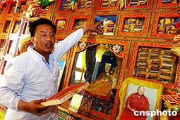 七月十二日,甘肅省甘南藏族自治州夏河縣藏醫(yī)院院長貢保扎西向來賓介紹該醫(yī)院藏醫(yī)藏藥學(xué)藏書館,他說,這二百八十冊藏醫(yī)藥學(xué)藥典記錄了近三千年藏醫(yī)藥臨床經(jīng)驗(yàn),對后來藏醫(yī)藥的發(fā)展起著重要作用。中新社記者:王麗南