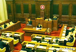 香港特別行政區(qū)行政長官董建華,七月十三日出席香港立法會(huì)舉行的會(huì)議,答復(fù)立法會(huì)議員提出的問題。作者:趙振清