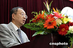 第四屆中文電化教學(xué)國際研討會(huì)二○○四年七月二十二日在北京語言大學(xué)召開。本屆會(huì)議主題是“數(shù)字化對(duì)外漢語教學(xué)”,國外眾多著名漢學(xué)家與會(huì)研討,會(huì)上展示了數(shù)字化對(duì)外漢語教學(xué)的最新成果。圖為國務(wù)院僑辦副主任劉澤彭在大會(huì)開幕式上講話。中新社記者:張勤