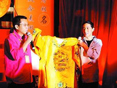 中新網(wǎng)7月24日電 成龍兒子房祖名昨日正式簽約北京太合麥田公司,拉開了其全面進(jìn)軍內(nèi)地市場的序幕。在昨天簽約儀式,唱片公司負(fù)責(zé)人送上龍袍作為見面禮,但害羞的房祖名卻不敢當(dāng)眾穿上。