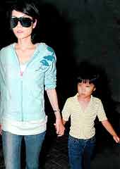 王菲顯然聽(tīng)到,一臉尷尬地拖著童童到頭等艙休息室等候。記者看到她一臉疲累,坐在椅子上閉目養(yǎng)神。下午5時(shí)15分,登機(jī)廣播傳來(lái),王菲立即起身帶女兒到柜臺(tái)辦手續(xù)。