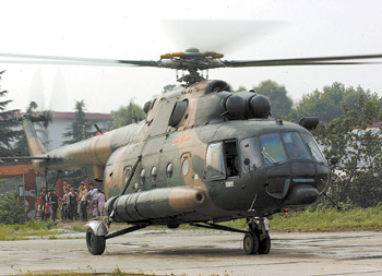盈江縣災(zāi)情發(fā)生后,當(dāng)?shù)剀娒窠M織力量進(jìn)行救災(zāi),但由于很多道路都被泥石流沖壞,機(jī)動(dòng)車過(guò)不去,運(yùn)輸成了很大的問(wèn)題。21日,成都軍區(qū)接到云南省軍區(qū)電話:災(zāi)區(qū)需要直升機(jī)支持。