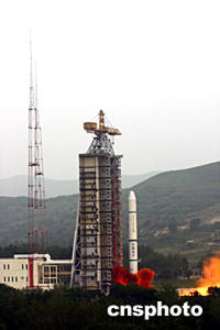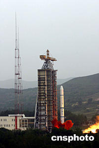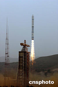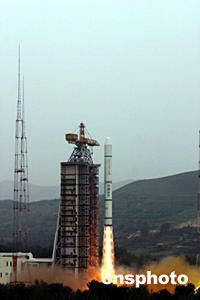 中國“雙星計(jì)劃”的第二顆衛(wèi)星——“探測二號(hào)”,二十五日下午在太原衛(wèi)星發(fā)射中心由“長征二號(hào)丙”改進(jìn)型運(yùn)載火箭成功發(fā)射升空。中新社記者孫自法攝