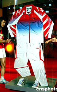 七月二十七日,李寧公司贊助第二十八屆奧運會中國代表團新聞發(fā)布會在北京舉行,李寧公司正式推出以“錦繡中華”領(lǐng)獎服和“極光”領(lǐng)獎鞋為主的領(lǐng)獎裝備。中新社記者:鄭萍萍