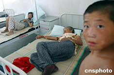 七月二十七日,幾名文樓村艾滋病人在該村衛(wèi)生院接受免費(fèi)治療。河南上蔡縣文樓村全村共三千二百一十一人,其中有賣血史的多達(dá)一千三百一十人,全村共有艾滋病人四百五十五人,全村百分之七十的人家有艾滋病人或艾滋病毒攜帶者。今年新建成的村衛(wèi)生院,占地六畝,門診、化驗(yàn)、心電圖、X光室、藥房、資料室,一應(yīng)俱全。作者:慎重