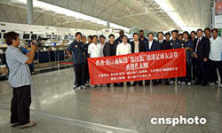 以香港奧委會(huì)主席霍震霆為團(tuán)長(zhǎng)、香港文匯報(bào)社長(zhǎng)張國(guó)良為副團(tuán)長(zhǎng)的香港愉園足球隊(duì),于7月31日乘機(jī)往云南麗江與麗江東巴足球隊(duì)進(jìn)行友誼賽。作者:洪少葵