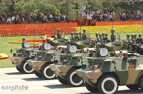 圖:駐港部隊裝甲車隊列接受檢閱