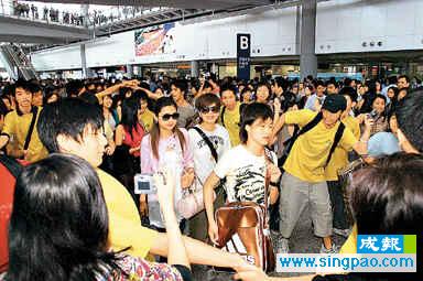 S.H.E的歌迷人數(shù)眾多,成功搶鏡。而其他歌手的Fans則以Energy較多,數(shù)目亦過(guò)百人,Energy四名成員分別步出機(jī)場(chǎng),由于每個(gè)成員均被Fans圍住,不停要求拍照及送禮物等,短短兩、三分鐘路程也要十分鐘才走到停車場(chǎng)。