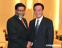 吳邦國說,中巴是傳統(tǒng)友好鄰邦,兩國人民之間的友好交往源遠(yuǎn)流長。建交五十多年來,無論國際風(fēng)云如何變幻,中巴關(guān)系不斷深化和發(fā)展,各方面合作全面展開。近年來,中巴高層互訪頻繁,在國際事務(wù)中相互支持。中國感謝巴方在臺灣、西藏、人權(quán)等涉及中國領(lǐng)土、主權(quán)等重大問題上所給予的一貫的堅定支持。