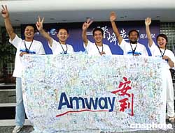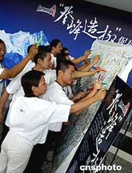 國家環(huán)保局九月將舉行“登峰造極”清掃珠穆朗瑪峰大型環(huán)保活動,安利(中國)日用品公司,八月四日在新疆安利營銷人員中舉行為中國環(huán)保做貢獻(xiàn)簽名活動。中新社記者:宋吉河