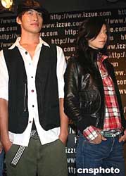 香港品牌Izzue于二○○四年八月初,兩岸三地同步推出T恤圖騰設(shè)計(jì)比賽,擔(dān)任品牌形象設(shè)計(jì)總監(jiān)的香港著名影星張曼玉,八月四日參加Izzue臺(tái)灣省臺(tái)北市旗艦店舉行的記者會(huì)。作者:董會(huì)峰