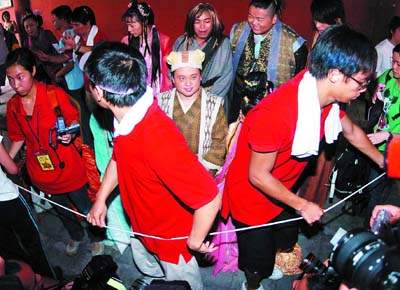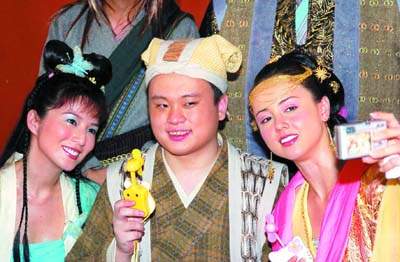 中新網(wǎng)8月5日電 據(jù)信息時報報道,由另類偶像孔慶翔和著名藝人薛家燕主演的古裝搞笑電影《花街歡樂坊》,昨日在南海影視城舉行開機儀式?讘c翔、薛家燕、恬妞、韓君婷、黃一飛等主演和導演鄭偉文以及監(jiān)制楊盼盼一起出席了開機儀式,而一直保持神秘的每個演員的造型也一并曝光。監(jiān)制楊盼盼就強調(diào),這部片是為孔慶翔度身訂做的。