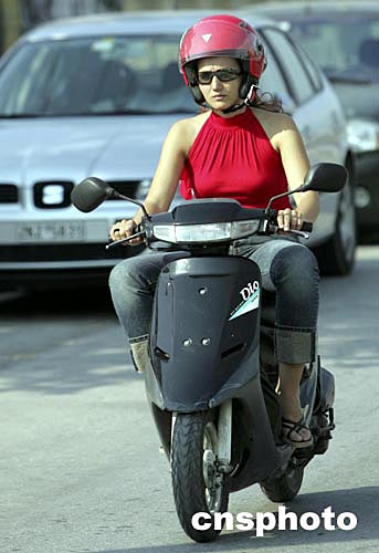 當?shù)貢r間8月5日上午,一輪烈日又將雅典帶入一個高溫天氣,一名紅裝摩托女郎從汽車大軍中急速駛過。雅典市有不少時尚男女,熱衷駕駛摩托車。中新社記者:任晨鳴