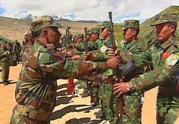 這是中國和巴基斯坦武裝力量6日在新疆塔什庫爾干縣舉行的首次聯(lián)合反恐軍事演習(xí)中的一幕。中國人民解放軍新疆軍區(qū)駐塔什庫爾干縣邊防部隊和巴基斯坦邊防部隊官兵200余人參加了這次非傳統(tǒng)安全領(lǐng)域的合作演習(xí)。參加演習(xí)的中巴雙方軍隊都有著豐富的反恐經(jīng)驗。巴基斯坦邊防部隊經(jīng)過多次反恐作戰(zhàn)的洗禮,實戰(zhàn)經(jīng)驗極為豐富,他們戰(zhàn)術(shù)技術(shù)精湛,作風(fēng)勇敢頑強(qiáng),軍事素質(zhì)過硬,有很強(qiáng)反恐作戰(zhàn)能力。