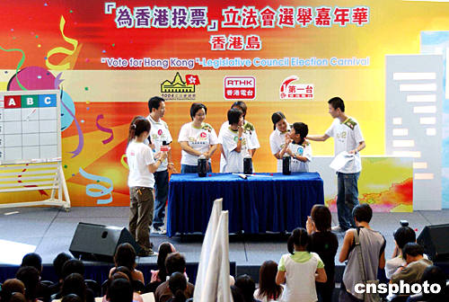 8月7日,香港電臺在藍灣廣場舉辦“為香港投票-立法會選舉嘉年華”,希望透過與民眾同樂,加深市民對選舉的認識。圖為市民踴躍參加節(jié)目,一派氣氛熱鬧。作者:洪少葵
