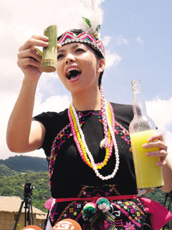 長老送上原住民的“養(yǎng)樂多”給阿妹,阿妹盡情的飲用,阿妹同時要記者陪同喝一杯,因為九日是阿妹的生日,她希望記者分享她的喜悅,不要再去想那些煩人的政治議題。