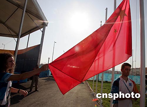 中新社雅典八月九日電 當(dāng)?shù)貢r(shí)間今天上午9點(diǎn)(北京時(shí)間14點(diǎn)),伴隨著雄壯的國(guó)歌聲,中華人民共和國(guó)國(guó)旗將在雅典奧運(yùn)村冉冉升起,中國(guó)代表團(tuán)將舉行入住奧運(yùn)村升旗儀式。