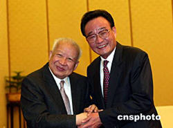 吳邦國對西哈努克國王和柬埔寨政府一貫奉行一個中國政策,在臺灣、西藏等重大問題上堅(jiān)定支持中國政府的立場表示高度贊賞和衷心感謝。