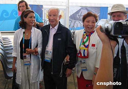 八月九日上午九時(shí)(雅典當(dāng)?shù)貢r(shí)間),薩馬蘭奇看望出席升旗儀式的中國代表團(tuán)。作者:李孝諄