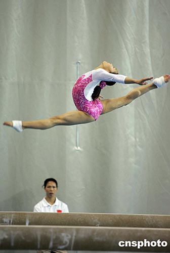 組圖:中國(guó)女子體操隊(duì)在雅典進(jìn)行賽前訓(xùn)練