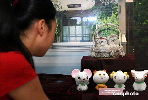 世紀(jì)偉人鄧小平——紀(jì)念鄧小平誕辰一百周年展覽將從八月十日持續(xù)到九月十五日在北京舉行。一位年輕的女觀眾正專心觀看鄧小平孫輩們送給爺爺?shù)纳斩Y物——快樂的大家庭。中新社記者:張勤