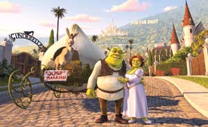 中新網(wǎng)8月11日電 據(jù)京華時(shí)報(bào)報(bào)道,集各種幽默元素于一體的“全球最賣座的3D動(dòng)畫片”《怪物史瑞克2》,昨天起在全國上映!皹O盡嘲諷調(diào)侃之能事”是影評(píng)人給予這部動(dòng)畫片的普遍評(píng)價(jià)。那么究竟有多少經(jīng)典影片片段被該片移花接木、有多少經(jīng)典形象被該片無情戲弄?敬請(qǐng)看《史瑞克2》爆笑解讀。