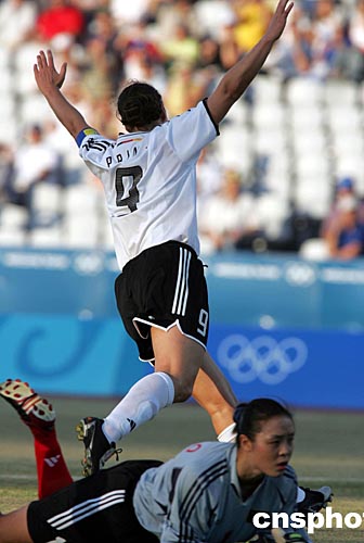 當(dāng)?shù)貢r(shí)間八月十一日晚,在遠(yuǎn)離雅典二百多公里的伯羅奔尼撒半島的帕特雷,中國女足首戰(zhàn)以零比八慘敗于世界冠軍德國隊(duì)。中新社記者:任晨鳴