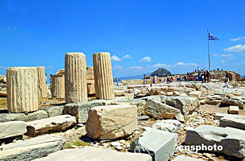 從雅典衛(wèi)城山頂遺留的殘垣斷柱,依稀還能領(lǐng)略到當(dāng)年古希臘的輝煌。中新社記者:王瑤