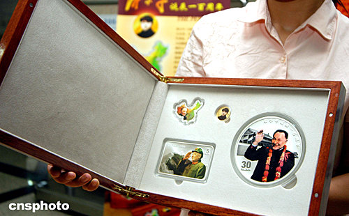由澳大利亞與新西蘭聯(lián)合鑄造發(fā)行的鄧小平誕辰一百周年紀念彩色金銀幣在常州面世。該套紀念幣每套一金三銀,金幣采用純度99.99之8克純金鑄造,圖案為“青年鄧小平”;銀幣采用99.9之白銀鑄造,由澳大利亞珀斯鑄幣局聯(lián)同新西蘭庫克群島聯(lián)合鑄造。其中“鄧小平及天安門”重500克,中國共發(fā)行500套。作者:蔣振江