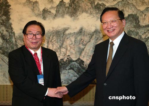 中新社北京八月十三日電(記者 邢利宇)國(guó)務(wù)委員唐家璇今天上午在中南海紫光閣會(huì)見(jiàn)了以會(huì)長(zhǎng)楊孫西為名譽(yù)團(tuán)長(zhǎng),常務(wù)副會(huì)長(zhǎng)計(jì)佑銘為團(tuán)長(zhǎng)的香港九龍東區(qū)各界聯(lián)合會(huì)訪京團(tuán)一行三十四人。