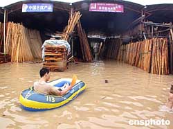在溫州樂清市樂成、虹橋、清江等鄉(xiāng)鎮(zhèn),臺風“云娜”帶來的狂風將成排成排的電線柱攔腰刮倒折斷;狂風掀走了不計其數(shù)的廣告牌和老式民房的屋頂。持續(xù)暴雨,造成當?shù)乇姸嘟ㄖ谎,一些地勢較低的地方成了一片汪洋,許多居民家積水半人高,家里冰箱、沙發(fā)等東西被淹,一些居民家里的廚房不能燒飯。樂成、虹橋、清江等地許多大街小巷積水及膝,汽車不能通行,行人只能涉水步行。