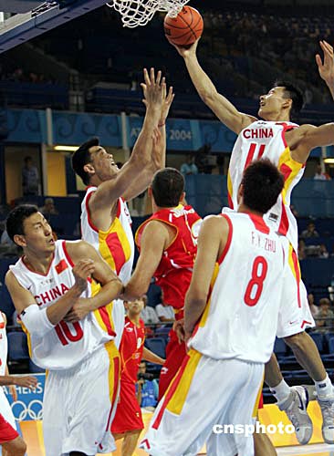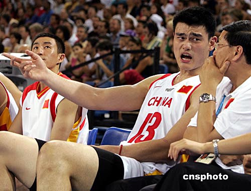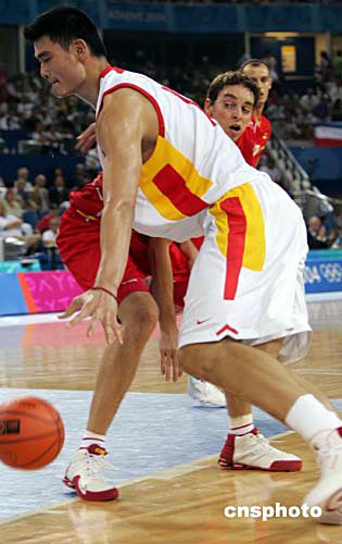 中新社雅典八月十五日電(記者 王祖敏)當(dāng)?shù)貢r(shí)間今天下午,中國(guó)男籃在奧運(yùn)會(huì)小組賽的首戰(zhàn)中,以五十八比八十三慘敗于西班牙隊(duì),小巨人姚明上場(chǎng)二十七分鐘獲得十二分,在第四節(jié)因?yàn)榉敢?guī)累計(jì)達(dá)到五次被罰下,而西班牙球星加索爾獲得全場(chǎng)最高的二十一分。