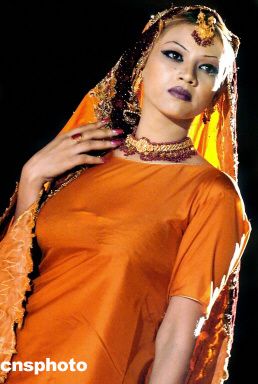 8月15日,在慶祝巴基斯坦國慶57周年活動上,模特演繹巴基斯坦頂尖時裝設(shè)計師Amna Malik的作品。