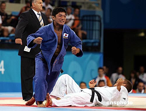 日本選手內(nèi)柴正人于當(dāng)?shù)貢r(shí)間八月十五日在雅典獲得第二十八屆奧運(yùn)會(huì)男子六十六公斤級(jí)柔道比賽冠軍。中新社記者:毛建軍