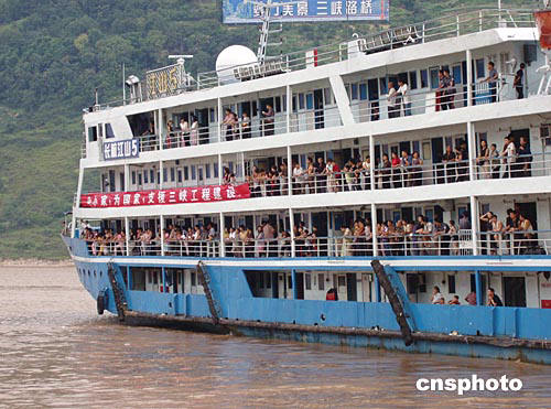 八月十六日上午十二時整,三峽庫區(qū)最后一批外遷移民首批的一千四百八十人,于今日從奉節(jié)港啟程前往江西省奉興縣和宜豐縣安家落戶,其余兩批外遷移民將于本月二十二日、二十六日啟程。屆時,整個三峽地區(qū)出庫外遷移民將全部結(jié)束。自一九九九年五月開始實施三峽移民外遷工作以來,共動遷移民人口達一百二十余萬人。作者:周會