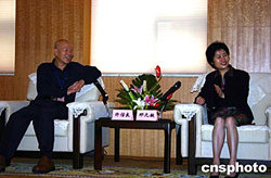 六十名臺(tái)灣地方知名人士訪(fǎng)問(wèn)重慶并參加“巴渝--三峽文化交流”活動(dòng),八月十六日上午重慶市委副書(shū)記邢元敏、重慶市副市長(zhǎng)吳家農(nóng)等會(huì)見(jiàn)其中部分人士。圖為邢元敏與臺(tái)灣知名人士許信良親切交談。作者:郭晉嘉