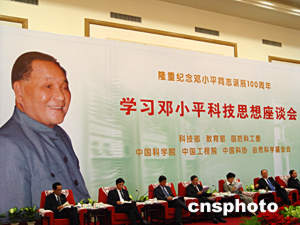 座談會由科技部部長徐冠華主持,中國工程院院長徐匡迪、教育部部長周濟(jì)、國防科工委主任張?jiān)拼、中國科協(xié)副主席張玉臺、中科院副院長李靜海、國家自然科學(xué)基金委主任陳宜瑜等主辦單位負(fù)責(zé)人,以及知名老科學(xué)家周光召、朱光亞、吳文俊等也分別講話,共同緬懷鄧小平關(guān)心和推動中國科技事業(yè)發(fā)展的豐功偉績。完