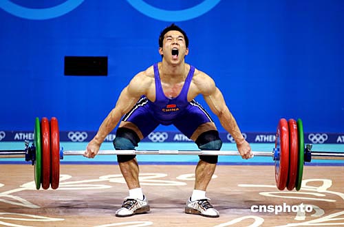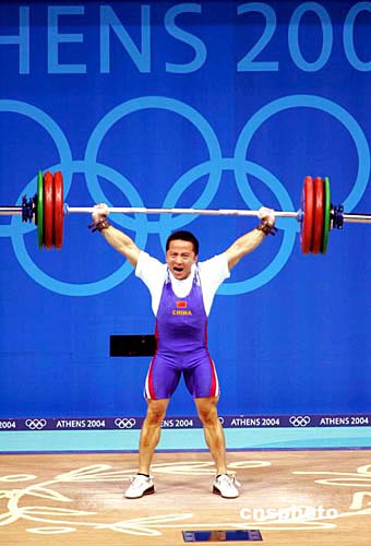 雅典當(dāng)?shù)貢r(shí)間二00四年八月十六日,雅典奧運(yùn)會(huì)男子舉重六十二公斤級(jí)比賽在雅典尼凱亞奧林匹克舉重館舉行,中國(guó)選手石智勇和樂茂盛包攬金銀牌。作者:新體