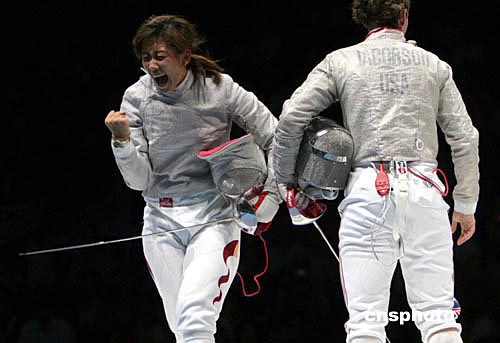 開局伊始,雅各布森攻勢(shì)兇猛,連得三分。不過,中國(guó)姑娘譚雪并未因此亂了陣腳,反而更加主動(dòng)出擊,頻頻搶攻,打得極有氣勢(shì)。雙方比分呈膠著狀態(tài)上升,一度戰(zhàn)成了五平、十平、十二平。最后關(guān)鍵時(shí)刻,譚雪連續(xù)強(qiáng)攻得分,最終將比分定格為十五比十二。