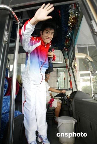 機場上,等待航班的運動員們身穿奧運比賽“領獎服”,表情輕松。擔負中國田徑“奪牌”重任的劉翔表示:到了雅典之后,他不會再進行大運動量的訓練,只是把最基本的工作做到位,靜侯與美國名將阿倫·約翰遜的對決。